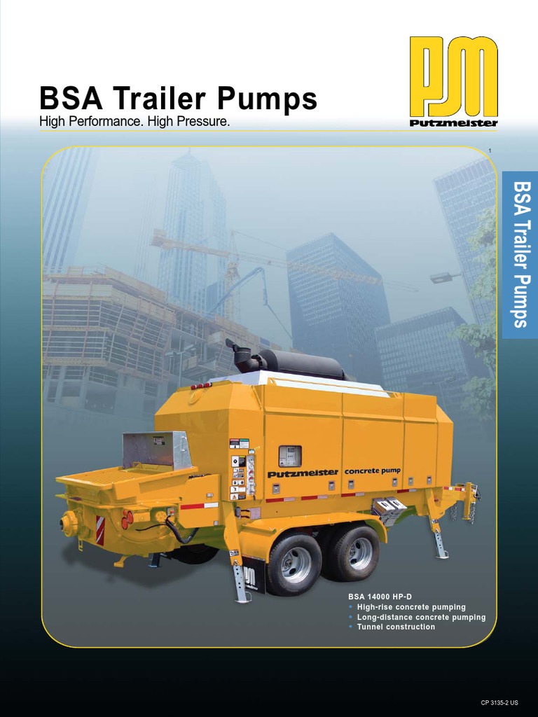 406 psi 28 bar hydraulically driven water pump wash out kit and hose integrated 185 gallon 700l water tank 38z metertruck mounted concrete boom pump standard features the pro vantage warranty plan extends the coverage on all putzmeister bsf boom pumps for a total of 36 months or 6 600 hours at no extra charge.